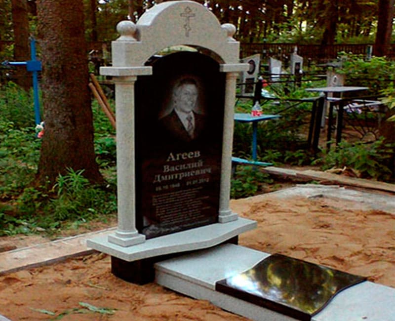 Стандартный комплект памятника включает в себя стелу, подставку и цветник. Плитка приобретается по желанию заказчика и за отдельную плату. Вместо цветника можно установить надгробную плиту.